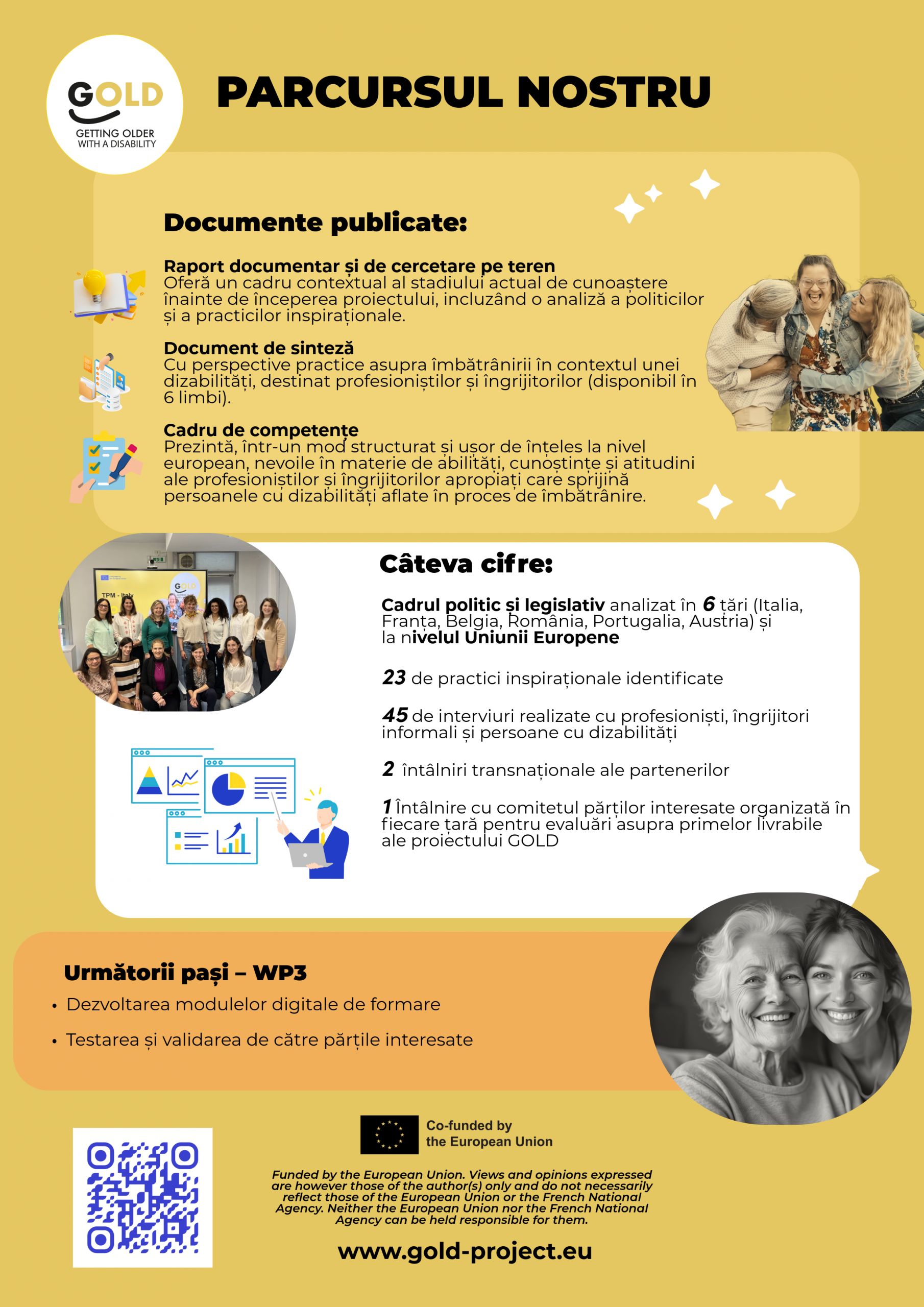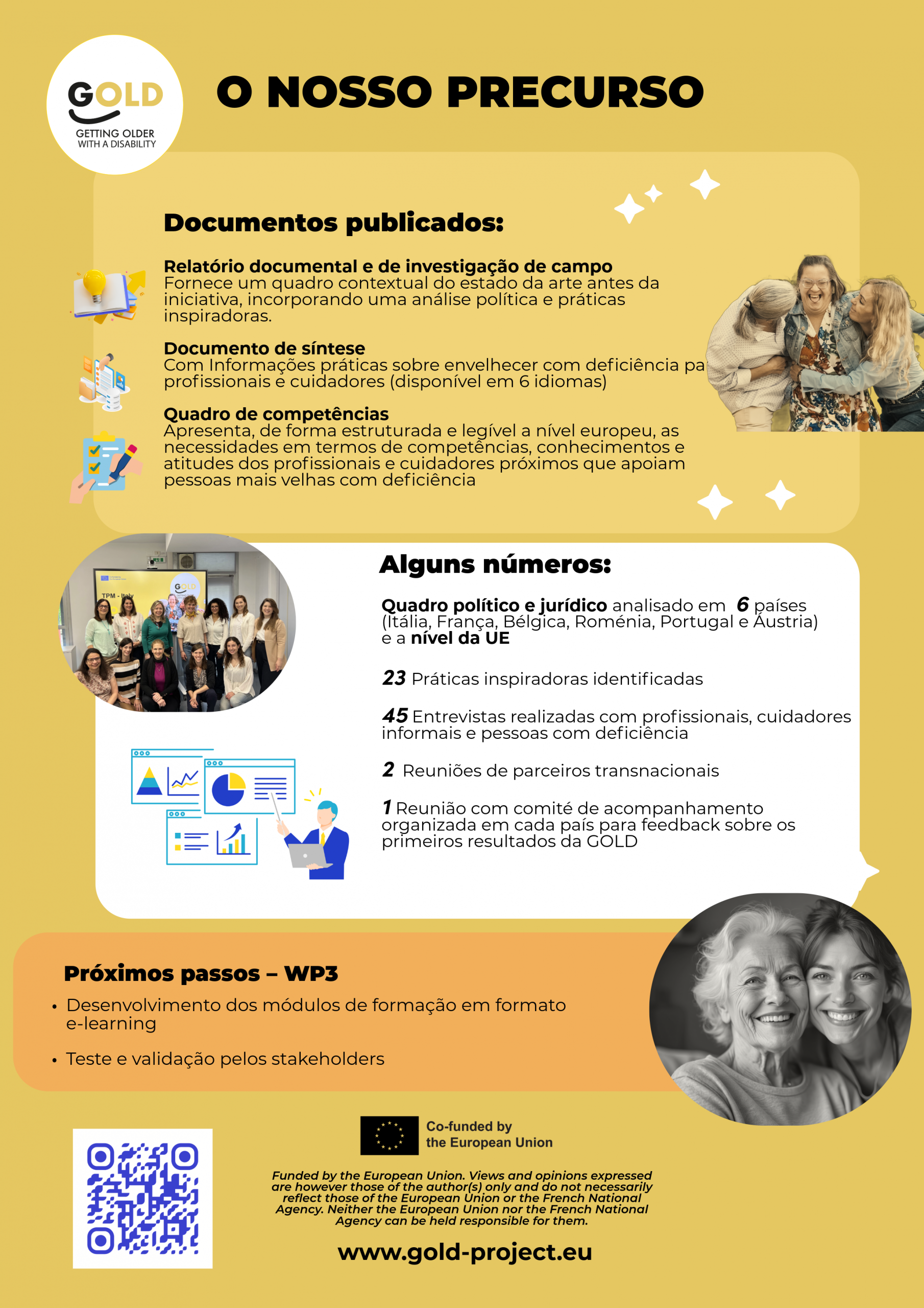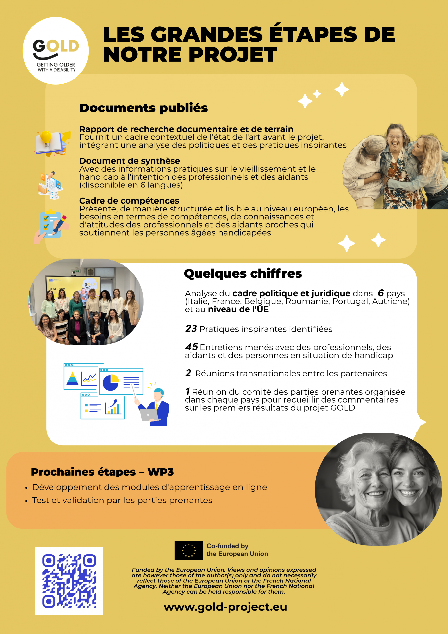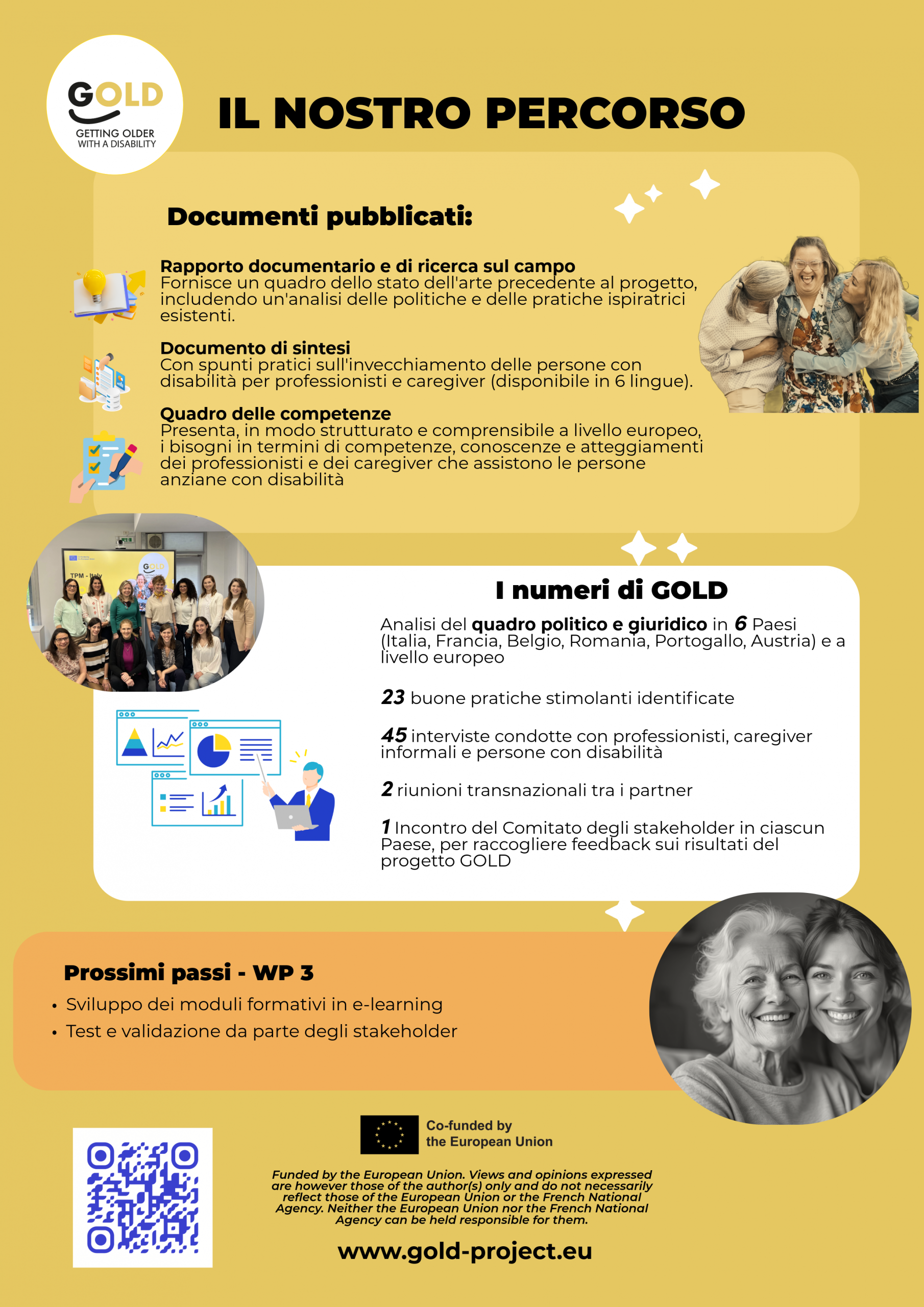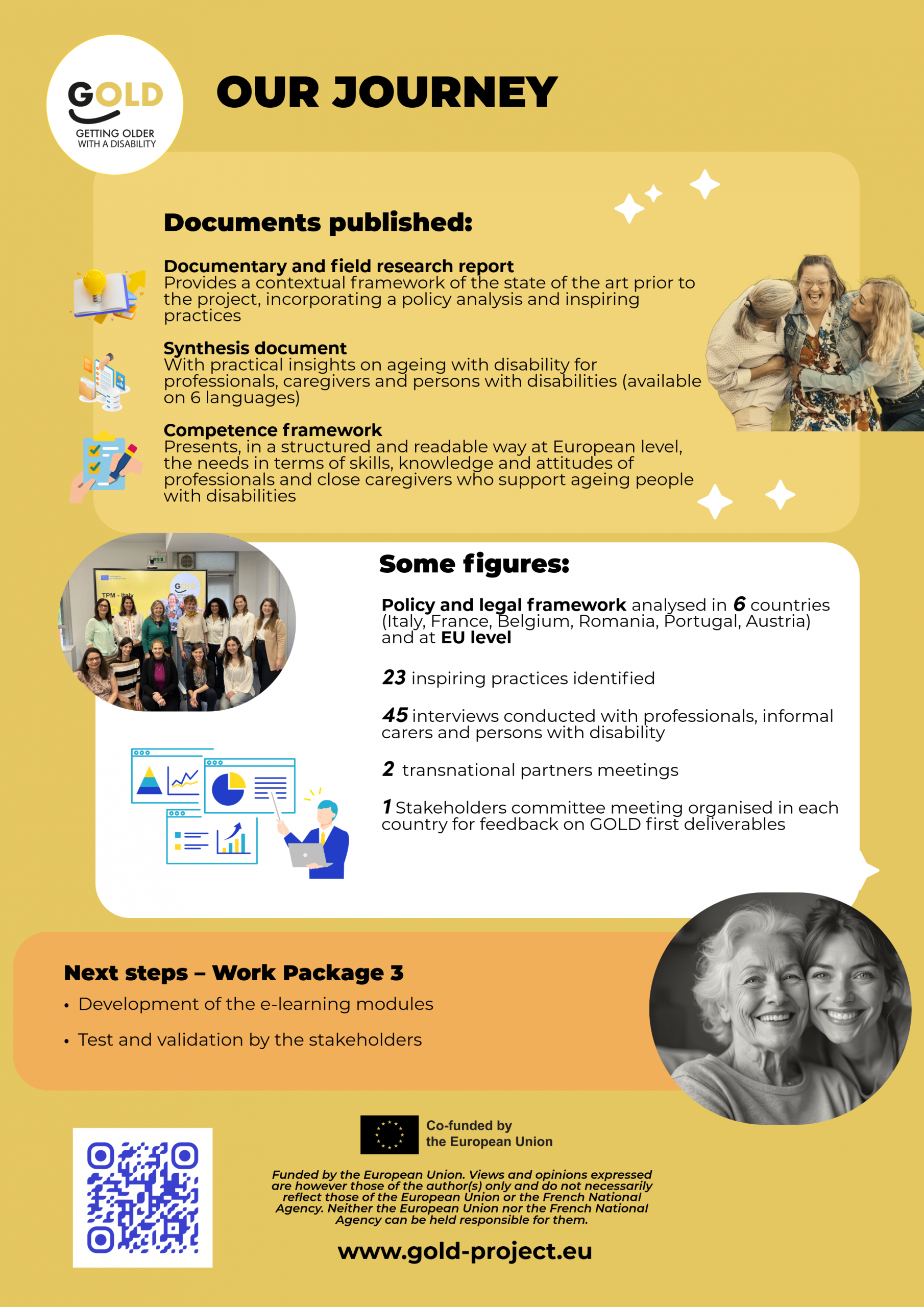 In recent months, GOLD project partners identified inspiring experiences and practices related to ageing people with disabilities, collected testimonies and analysed the training needs for professionals, by collecting information on 23 good practices and conducting 45 qualitative interviews with ageing people with disabilities, professionals and caregivers.