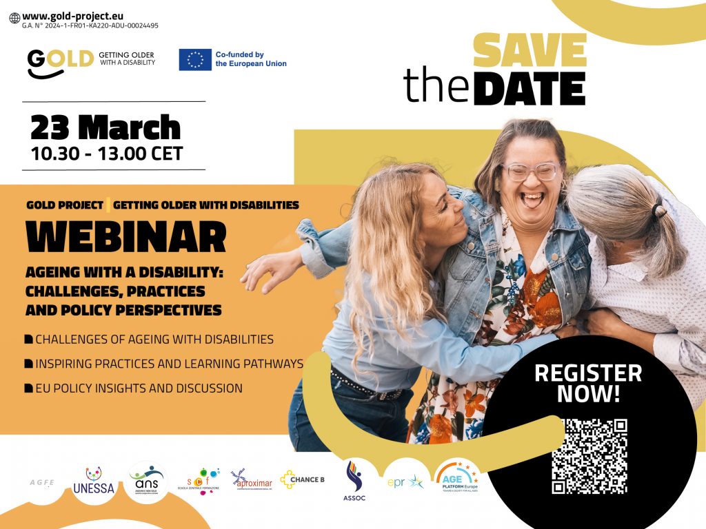 The world’s population is ageing rapidly, with the proportion of people over 60 expected to almost double by 2050. At the same time, life expectancy for people with disabilities has increased significantly, creating unique challenges for health and social care. Ageing with a disability often leads to premature health decline and increased vulnerability to secondary conditions. Despite shared risks with the general ageing population, gaps remain in service design and professional skills. The GOLD project aims to equip disability and geriatric care professionals and informal carers with the tools to anticipate risks and ensure quality support for ageing people with disabilities.